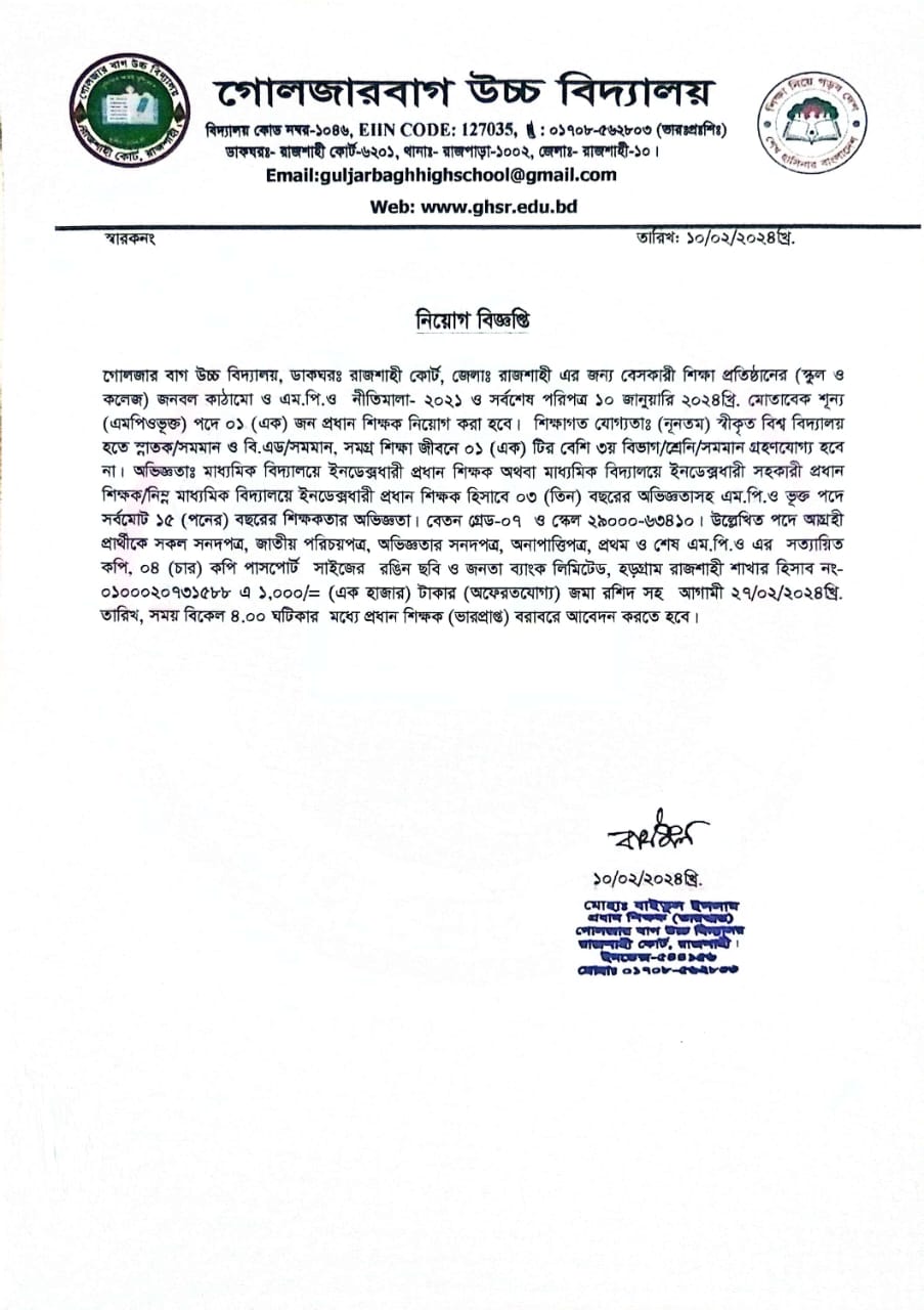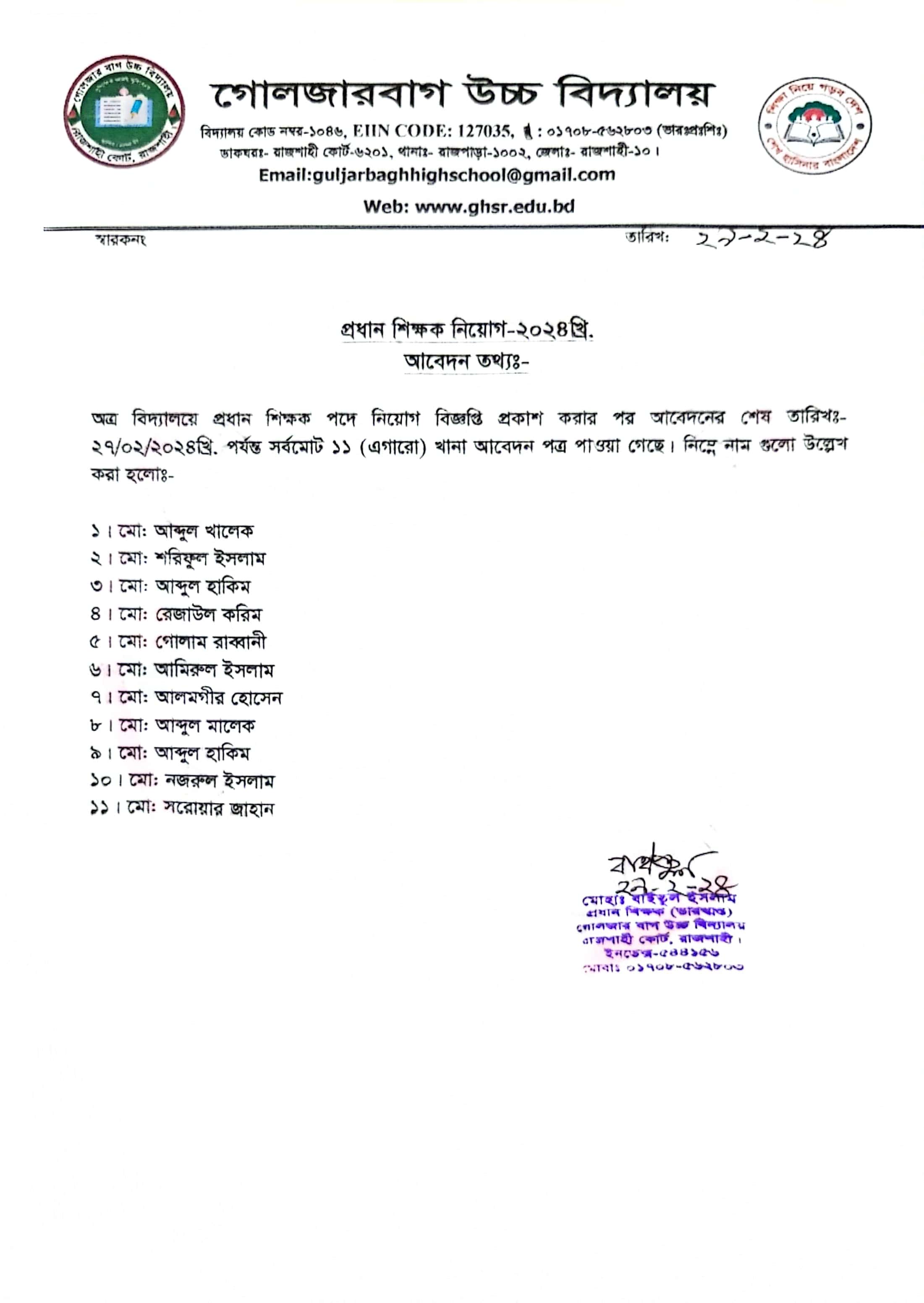 বিষয়: প্রধান শিক্ষক নিয়োগের জন্য আবেদনকারির নামে লিস্ট।